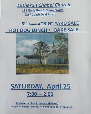 Church yard sale coming on April 25, 2026.